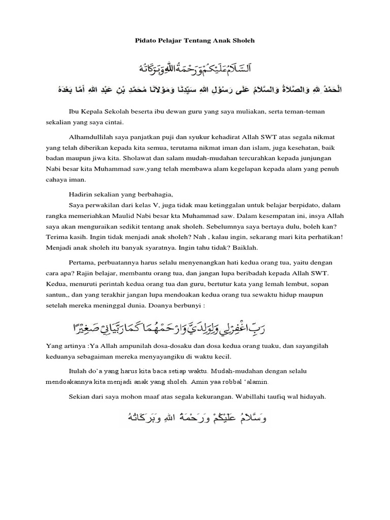 Contoh Pidato Anak Sholeh | Contoh Soal Dan Materi Pelajaran 3