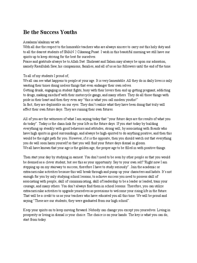 DOC) Teks contoh pidato bahasa inggris dan Artinya Youth Generation That Brings Alteration | putri ilmi - Academia.edu