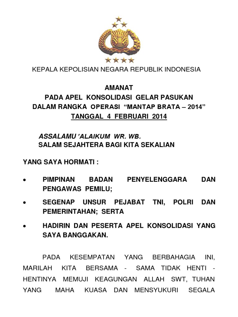Amanat Kapolri Dlm Rangka Apel Konsolidasi Mantap Brata 2014