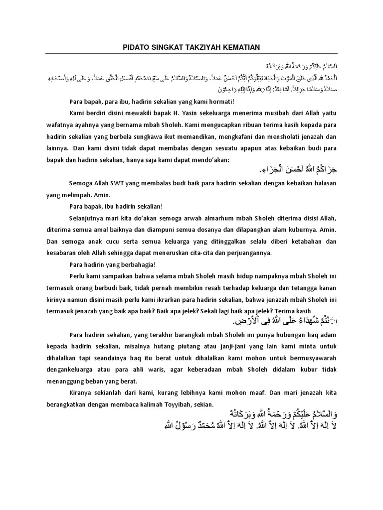 PIDATO SINGKAT TAKZIYAH KEMATIAN