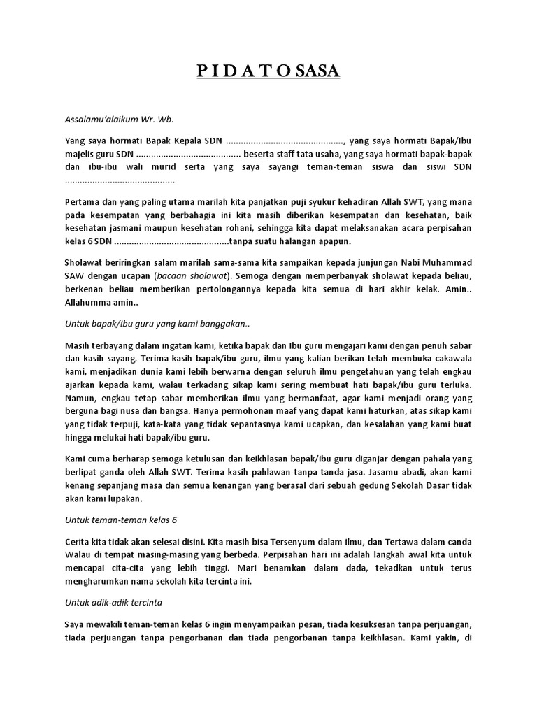 Pidato Perpisahan Kelas 6 SD - [DOCX Document]