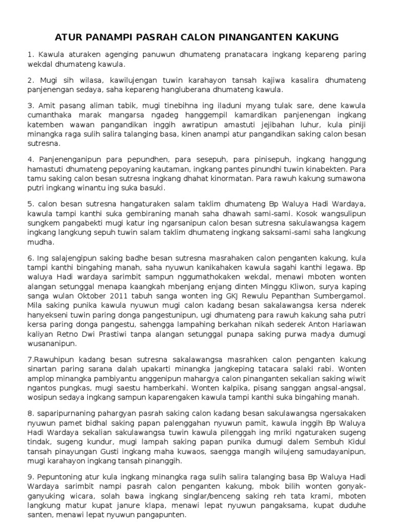 DOC) pidato bahasa jawa : pasrah temanten | Dyah Safira - Academia.edu