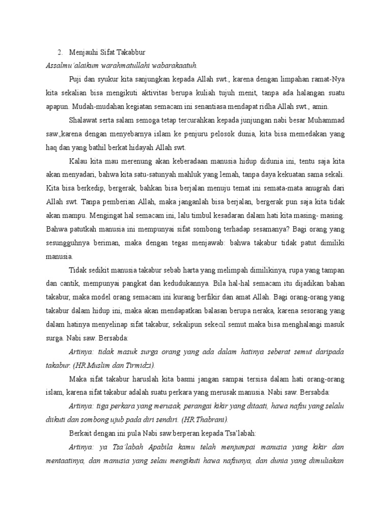 Pidato Singkat Tentang Menjauhi Sifat Takabur