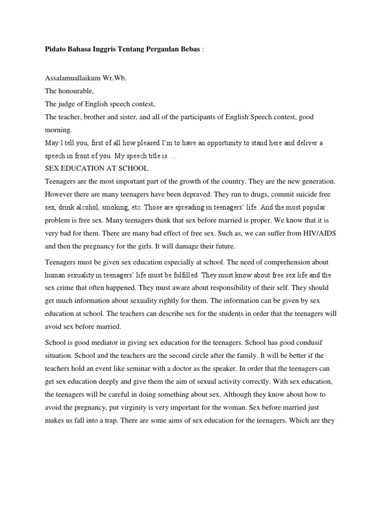 Pidato Bahasa Inggris Tentang Pergaulan Bebas | Sex Education | Adolescence