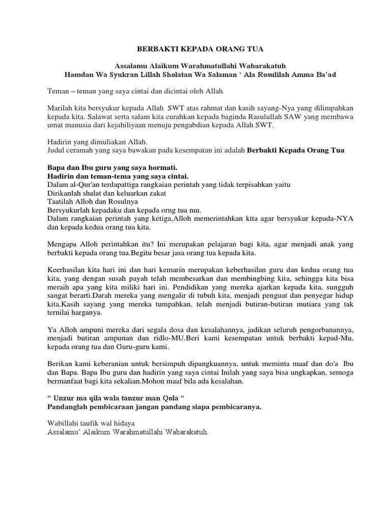 DOC) Contoh Teks Pidato Pildacil -Berbakti Kepada Orang Tua | Henny Rosa - Academia.edu