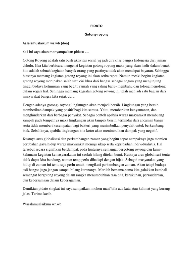 Contoh Pidato Bahasa Jawa Tentang Gotong Royong - [PDF Document]