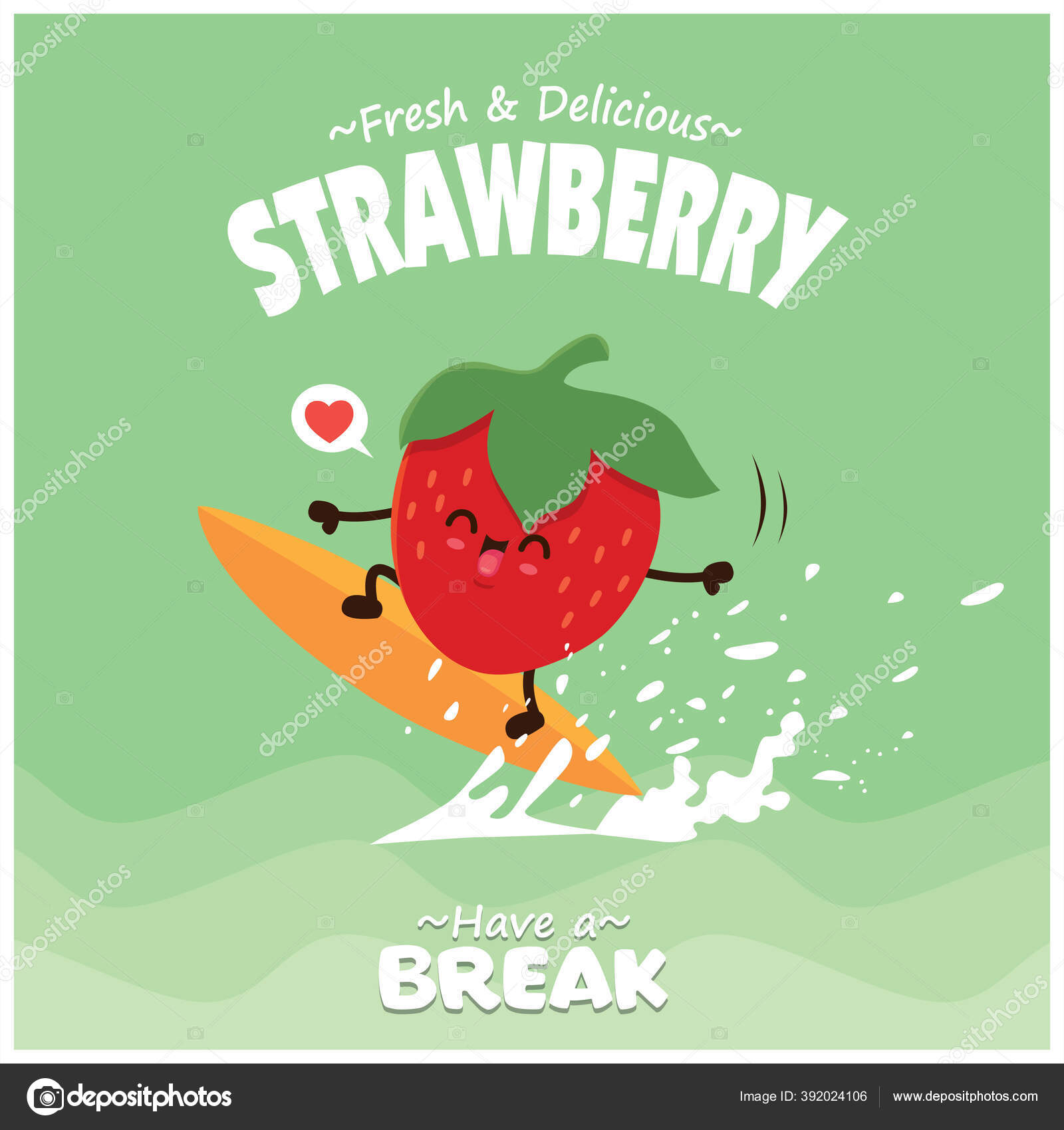 Desain Poster Buah Antik Dengan Karakter Strawberry Vektor — Stok Vektor © Donnay #392024106