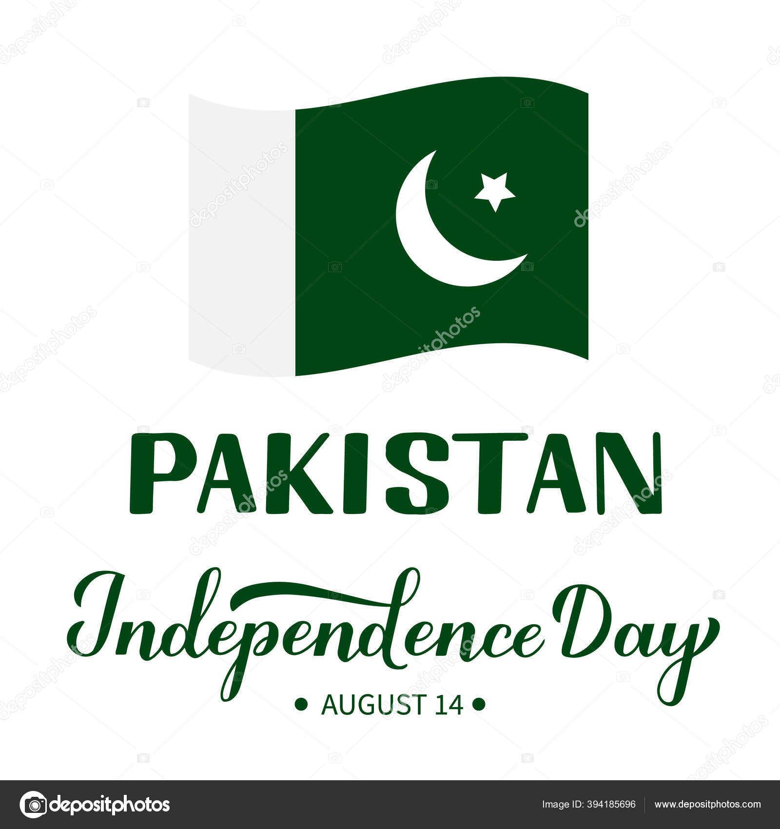 Kaligrafi Hari Kemerdekaan Pakistan Tulisan Tangan Terisolasi Dengan Warna Putih — Stok Vektor © designergraphic84 #394185696