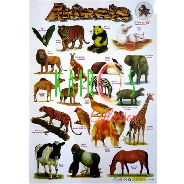Poster Hewan - Nama Hewan - Alat Peraga Pendidikan TK SD - 2 Bahasa | Lazada Indonesia
