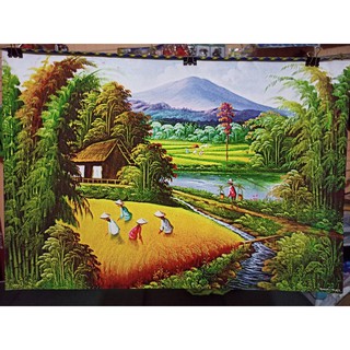 Lukisan Pemandangan Sawah 1 x 2 m | Shopee Indonesia