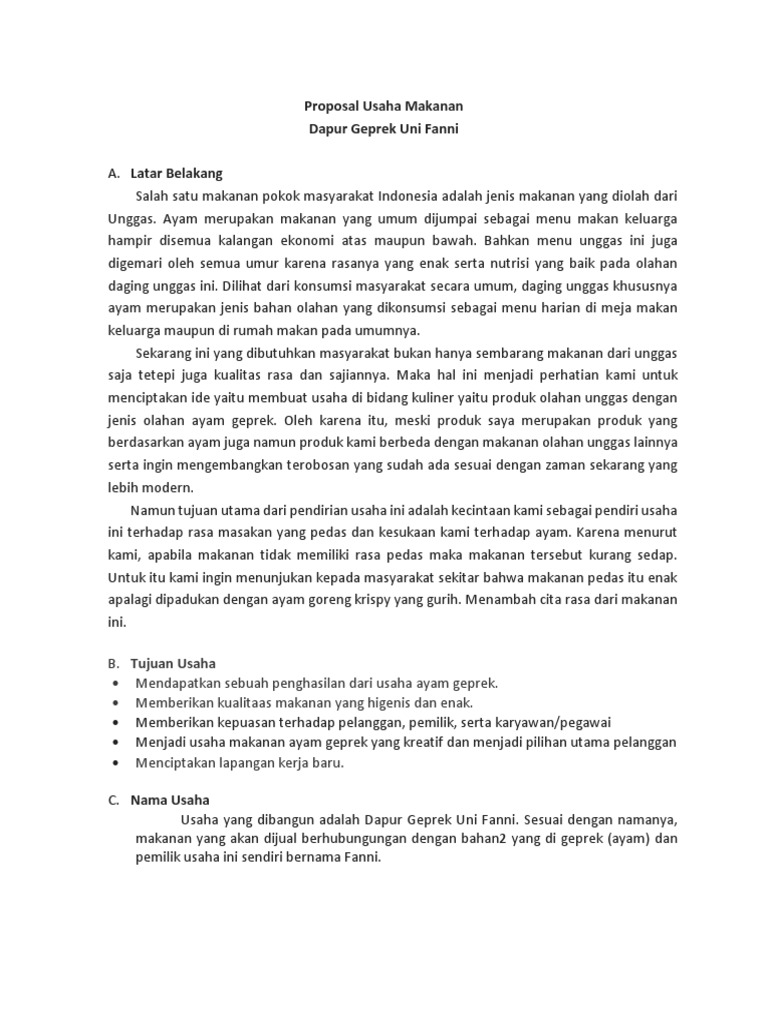 Contoh Proposal Usaha Makanan Ayam Geprek - Berbagi Contoh Proposal