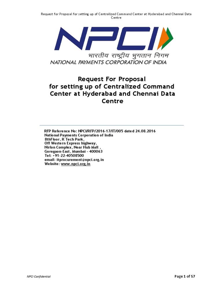 Request for Proposal (RFP) for Design, Supply, Install, Support& Maintain Unified Command& Control Center Solution (uCCS