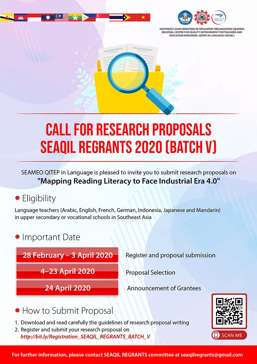 Hibah Penelitian SEAMEO Qitep in Language (SEAQIL Regrants) Batch V Tahun 2020 - LiteraHati.Com