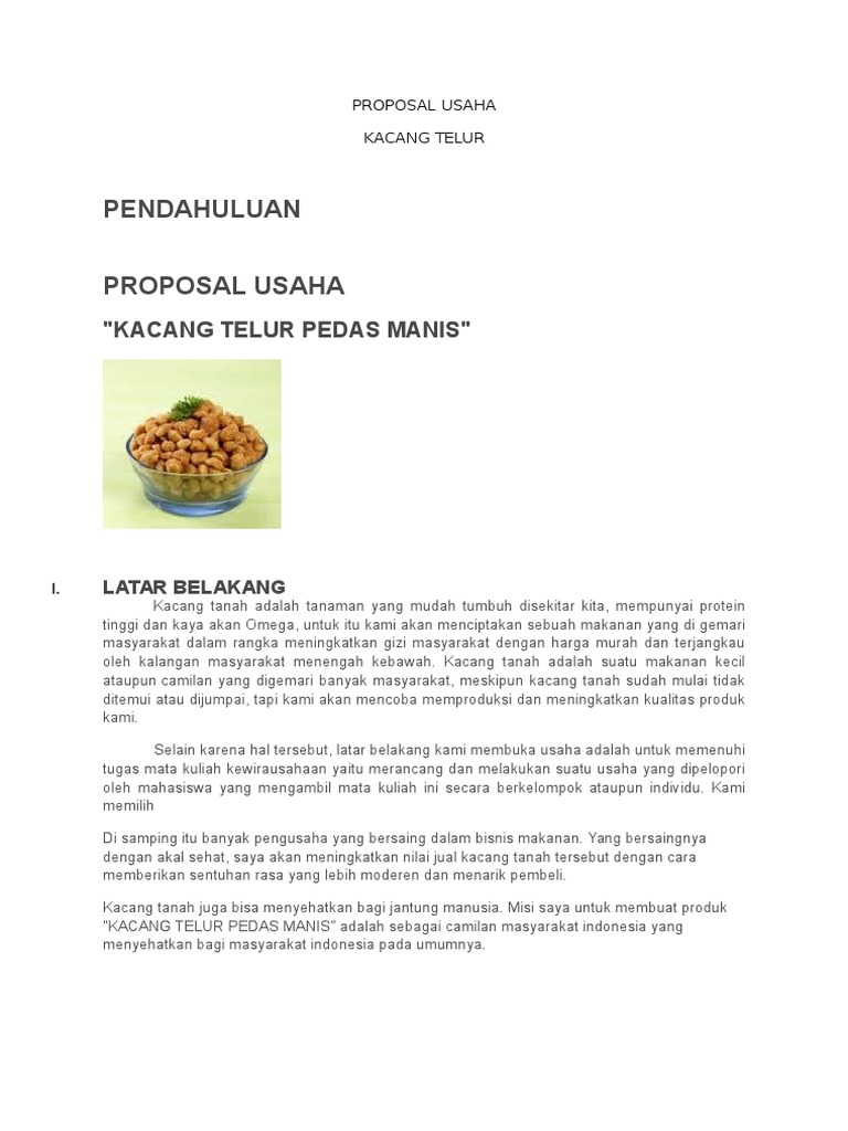 Proposal Usaha: Proposal usaha kacang telur pedas manis