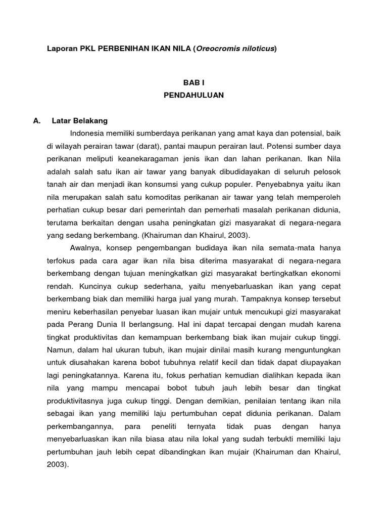 PDF) Laporan PKL : TEKNIK BUDIDAYA IKAN NILA | fitria ayu - Academia.edu