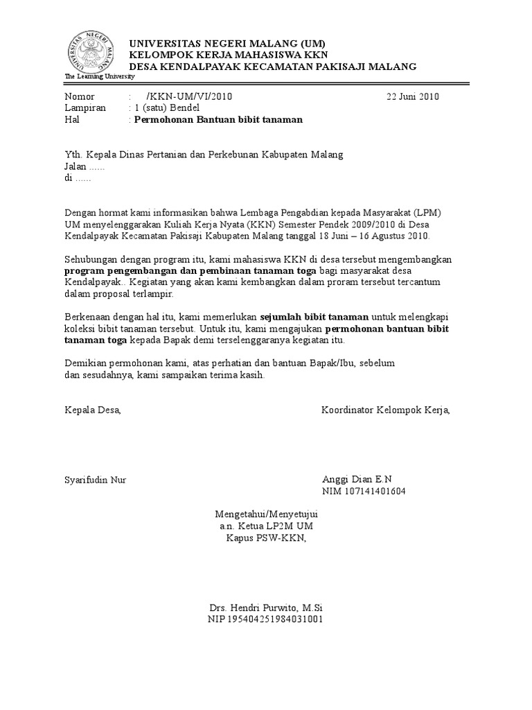 Contoh Surat Permohonan Bantuan Bibit Tanaman - Contoh Seputar Surat