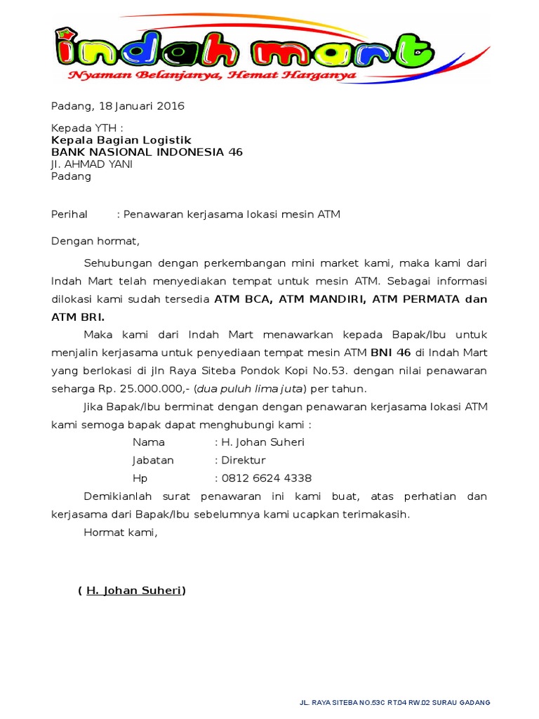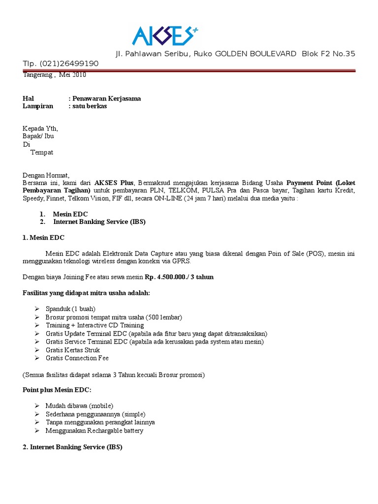 Contoh Surat Penawaran Kerjasama Sewa Tempat Atm - Dapatkan Contoh