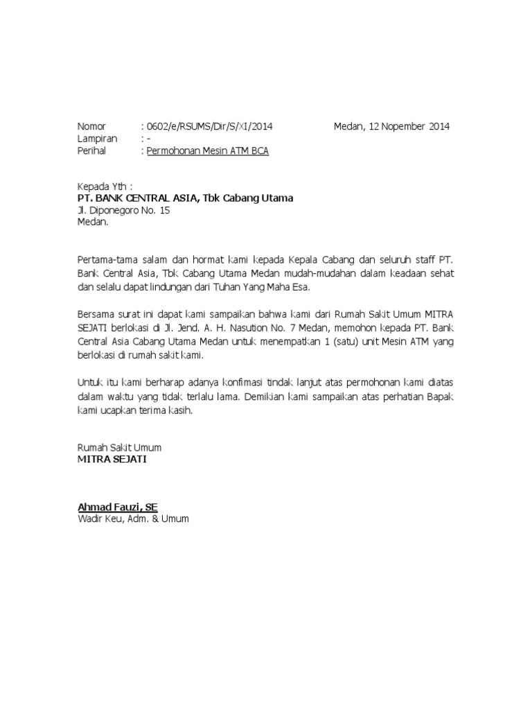Contoh Surat Pengajuan Mesin Atm Ke Bank - Kumpulan Contoh Surat