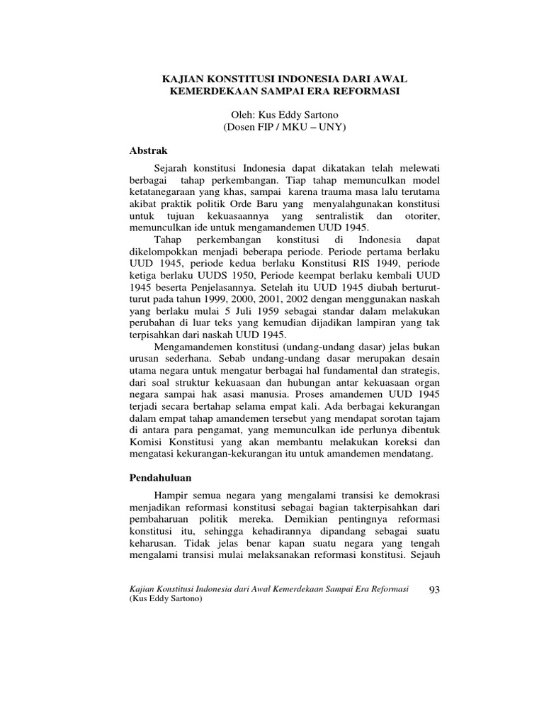 [ ](https://i1.rgstatic.net/publication/339601094_KAJIAN_KONSTITUSI_INDONESIA_DARI_AWAL_KEMERDEKAAN_SAMPAI_REFORMASI_KONSTITUSI_PASCA_ORDE_BARU/links/5e5c9fa992851cefa1d4b443/largepreview.png) PDF) KAJIAN KONSTITUSI INDONESIA DARI AWAL KEMERDEKAAN SAMPAI ...