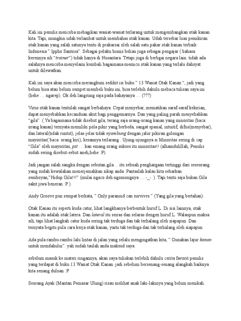 13 Wasiat Terlarang dengan Otak Kanan ~ Sahabat Belajar Indonesia