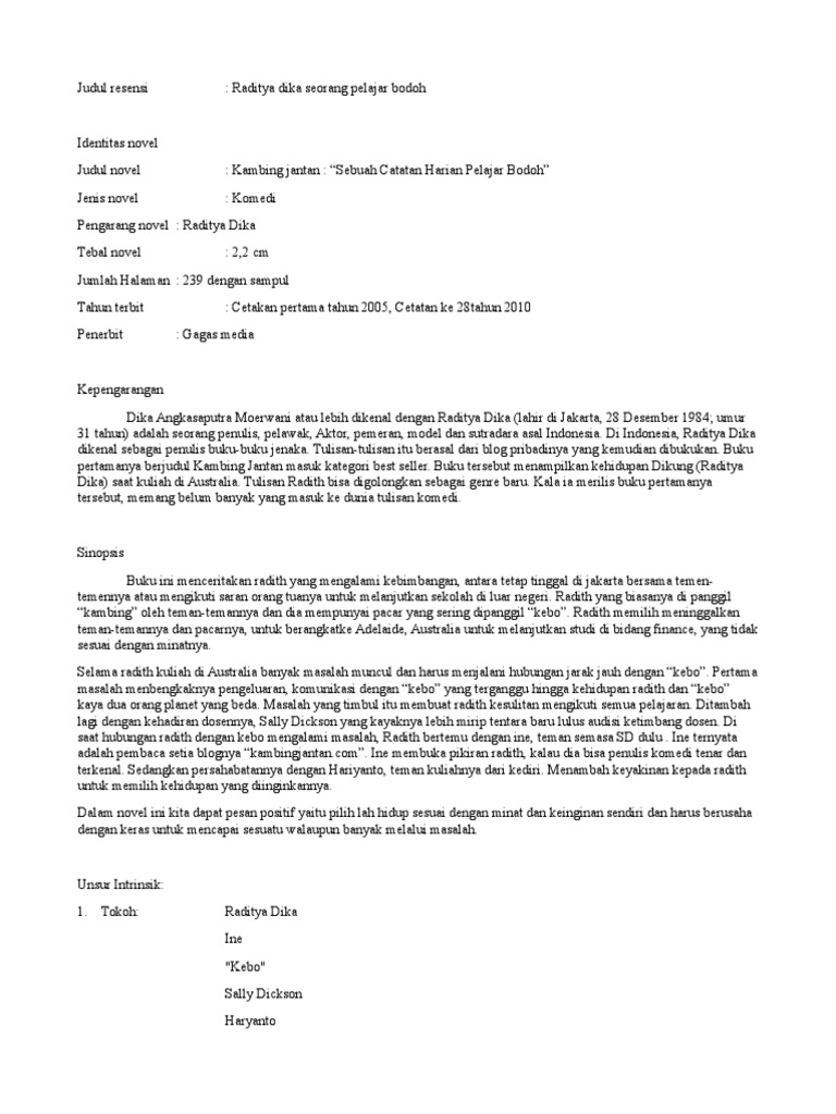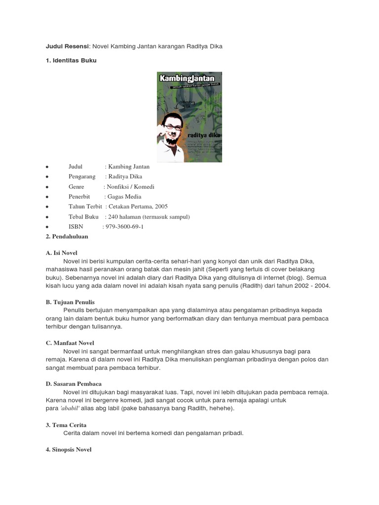 Judul Resensi: Novel Kambing Jantan karangan Raditya Dika 1. Identitas Buku