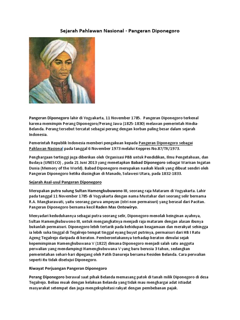 Sejarah Pahlawan Nasional - Pangeran Diponegoro