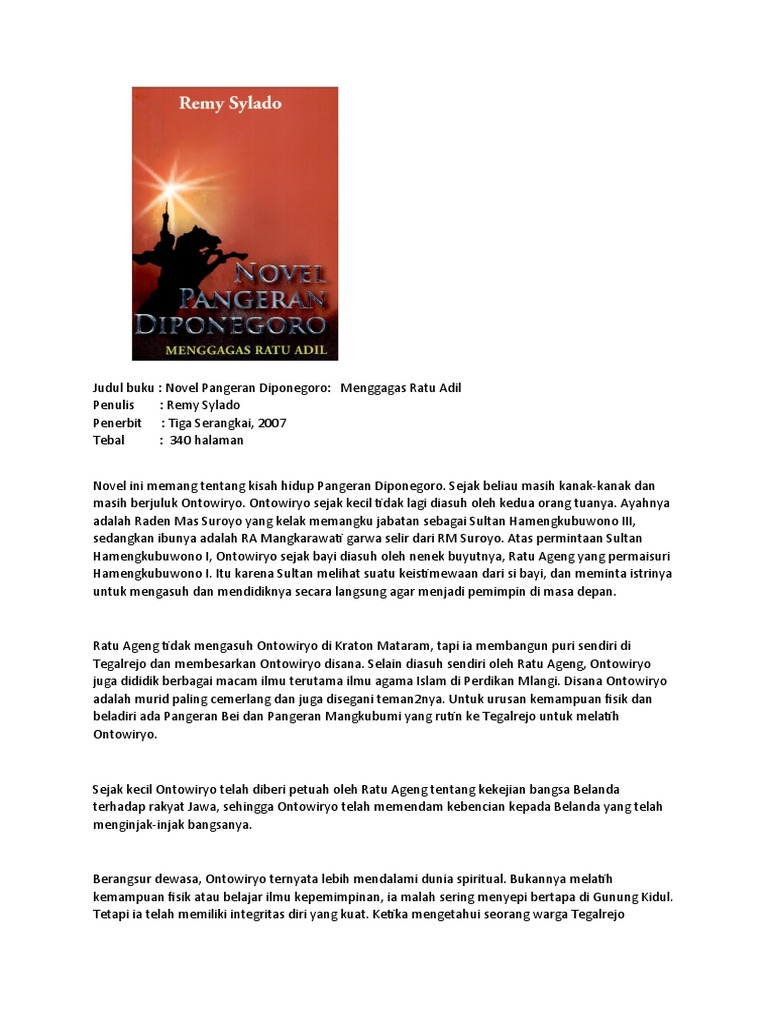 Tuliskan sinopsis novel sejarah Pangeran Diponegoro Menggagas Ratu Adil! - Brainly.co.id