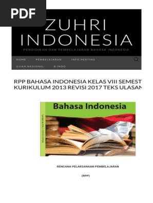 CONTOH RPP TERBARU SESUAI PEDOMAN PENYUSUNAN RPP KURIKULUM 2013 REVISI 2017 ~ ZUHRI INDONESIA