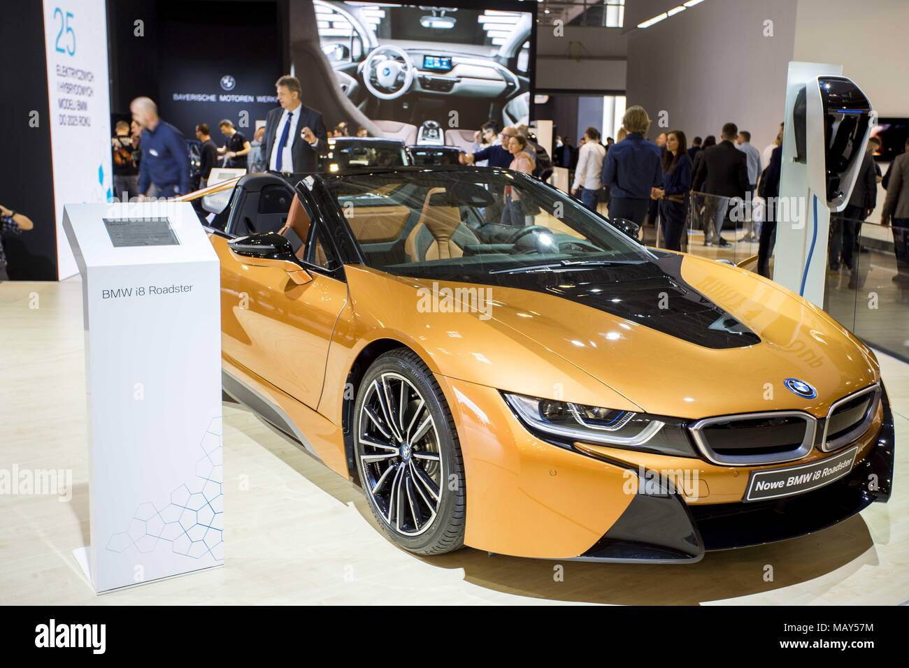 BMW at Poznan Motor Show 2018, 8 April 2018, Poznan, Poland. People at the biggest automotive trade fair in Poland and the fourth in Europe under the slogan Automotive Tomorrow – Stock