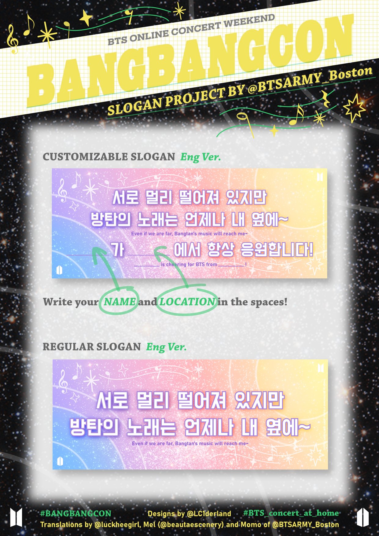 Boston ARMY on Twitter: “[#BANGBANGCON Slogan] Show your support for #BTS no matter where you are! DL our customizable slogan from https://t.co/TApfB5jYcL & add your name/location Available in Eng, Español, RT