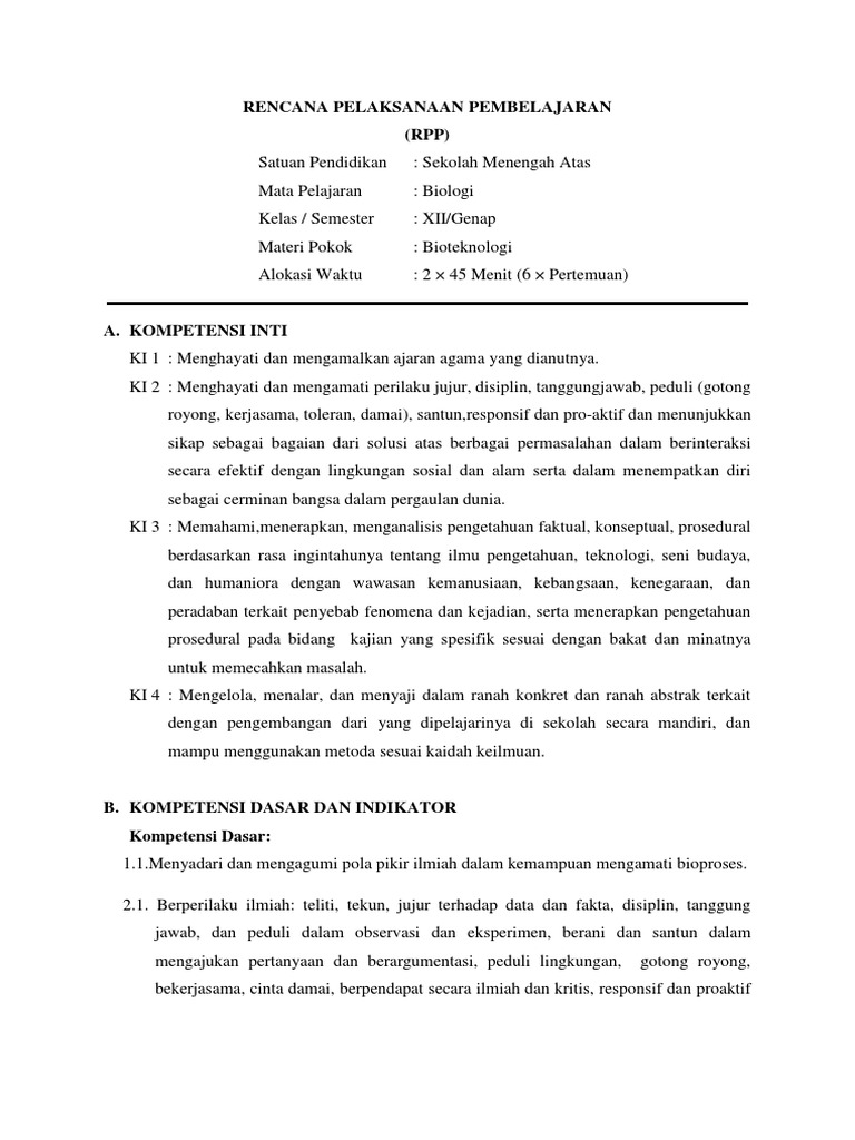 RPP BIOTEKNOLOGI KELAS XII