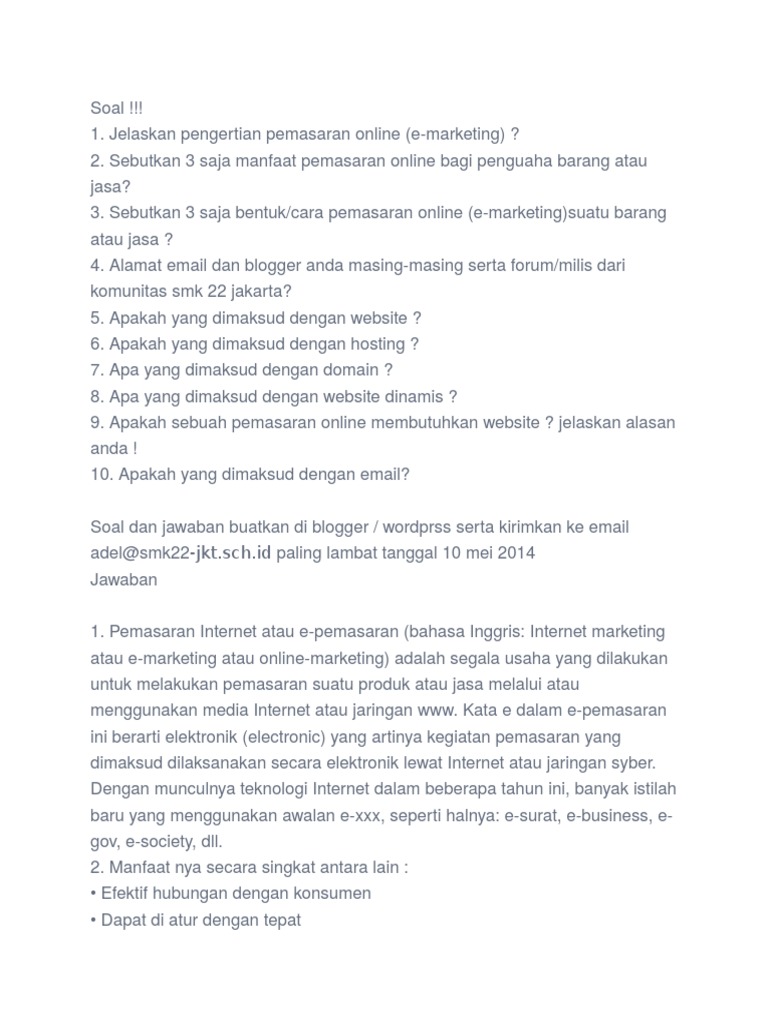 Soal Pemasaran Online Kelas 11 - Guru Ilmu Sosial