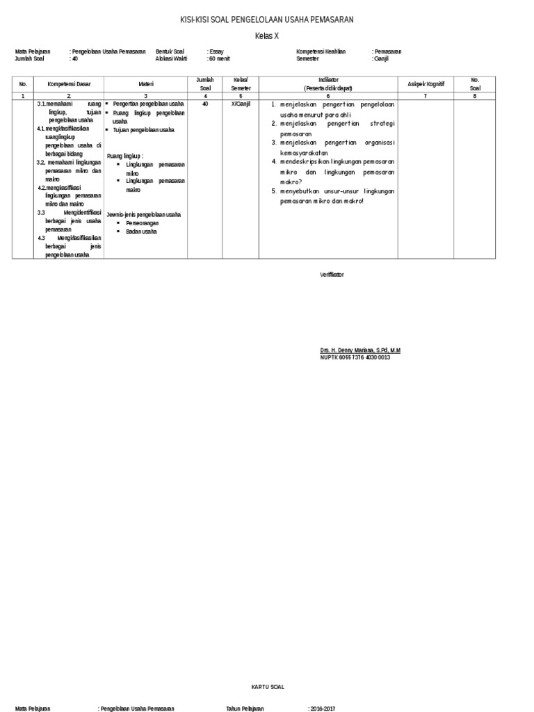 KISI2&KARTU Soal Pup Uts