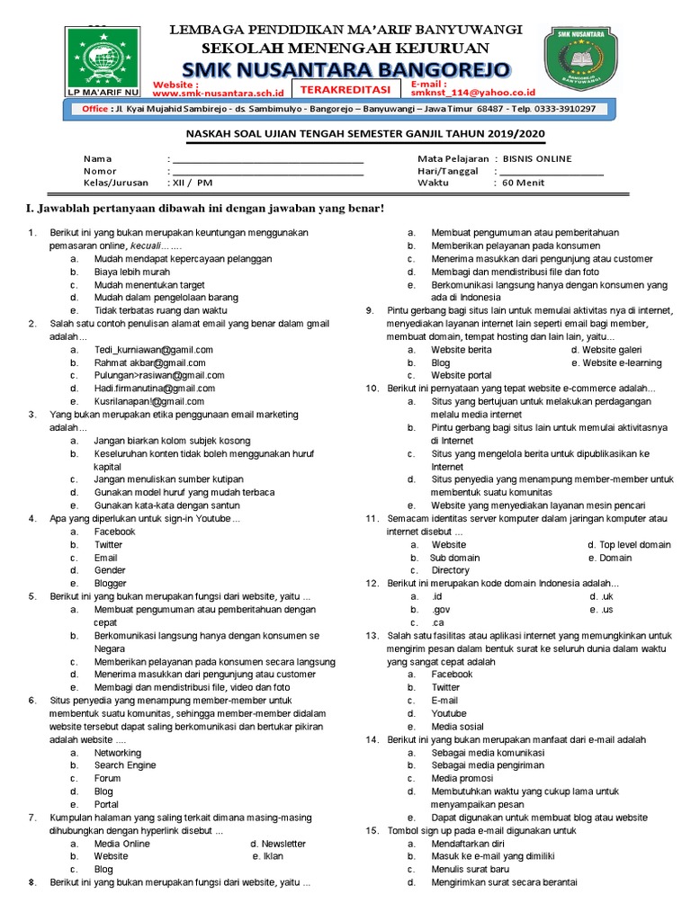 soal mata pelajaran bisnis online kelas xii smk
