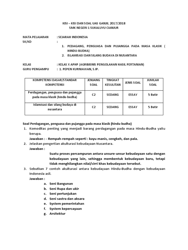 DOC) SOAL DAN JAWABAN UTS SEJARAH INDONESIA KELAS 10 SEMESTER 2 | Syaiful Islami - Academia.edu