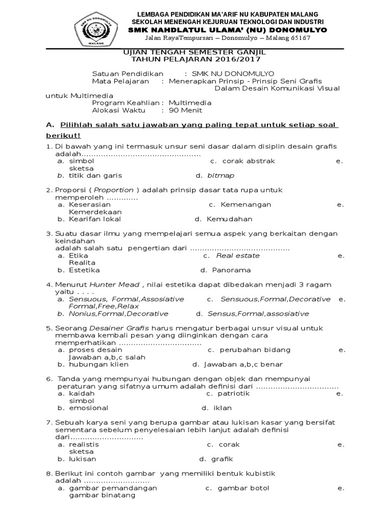 SOAL UTS Desain Grafis DKV 2016 2017