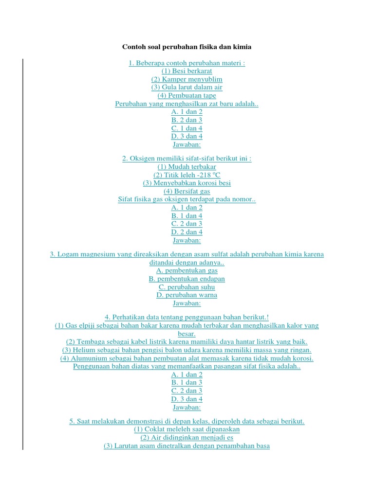 Contoh Soal Perubahan Fisika Dan Kimia Kelas 7 - Bagikan Contoh