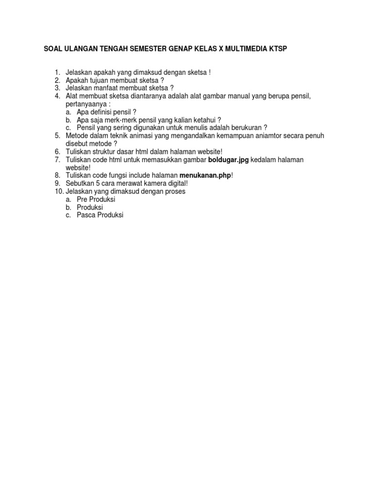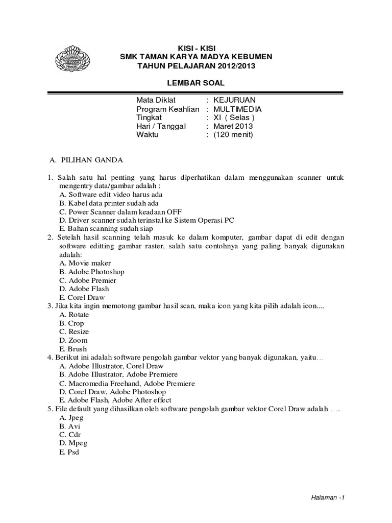 DOC) SMK MARKUS TANGERANG SOAL KELAS XII MULTIMEDIA | Dinda Juriyadi - Academia.edu
