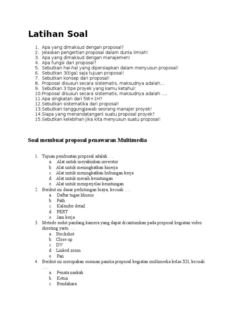 Latihan Soal Menyusun Proposal Penawaran