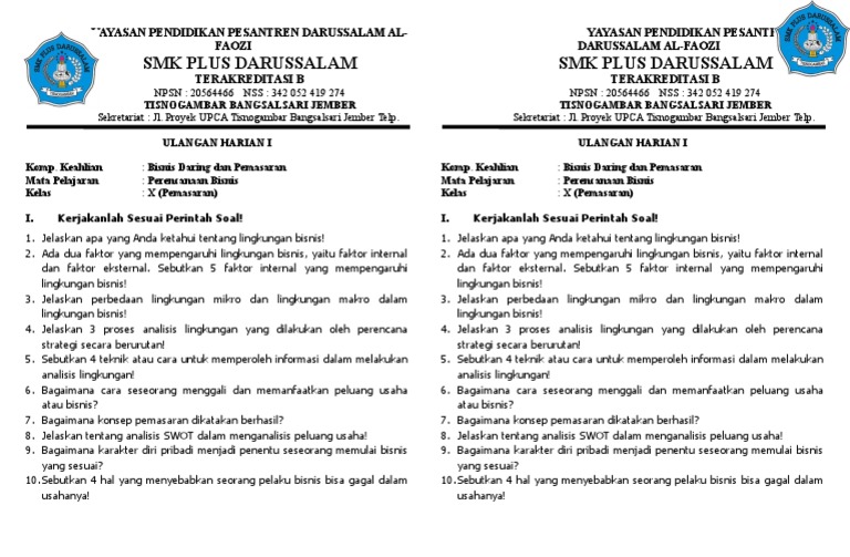 Soal Dan Jawaban Perencanaan Bisnis - Dunia Sekolah ID