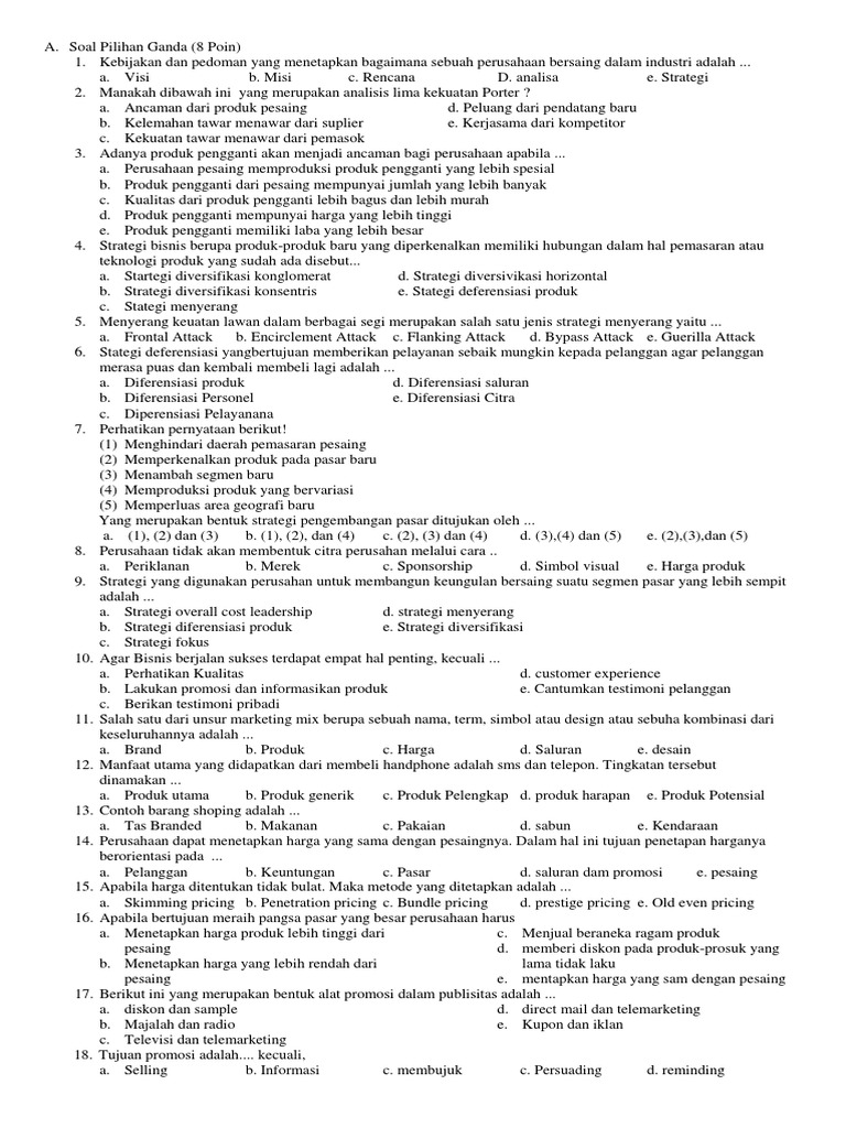 DOC) Soal -Soal UTS dan UAS Manajemen Strategi SOAL-SOAL UTS …
