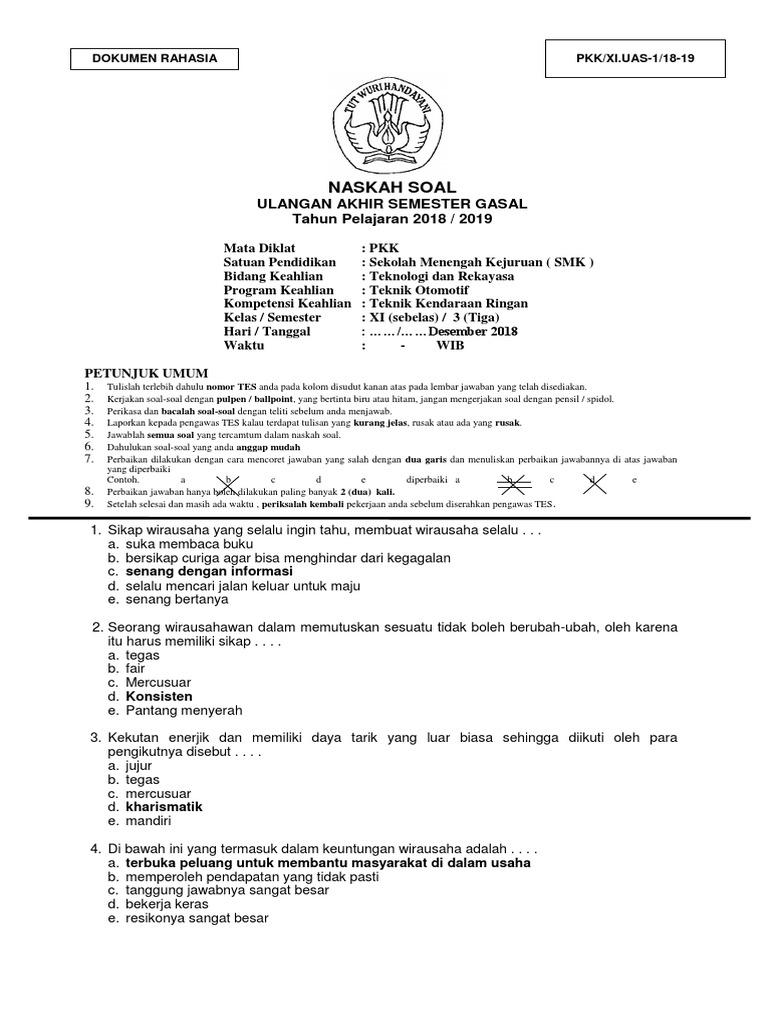 DOC) SOAL SEMESTER 1 KELAS X KWU & KUNCI JAWABAN | Syaiful Islami - Academia.edu