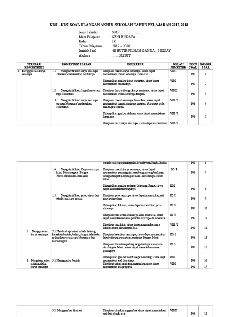 DOC) KISI UM Seni Budaya Kelas IX 2017 2018 | casman afandy - Academia.edu