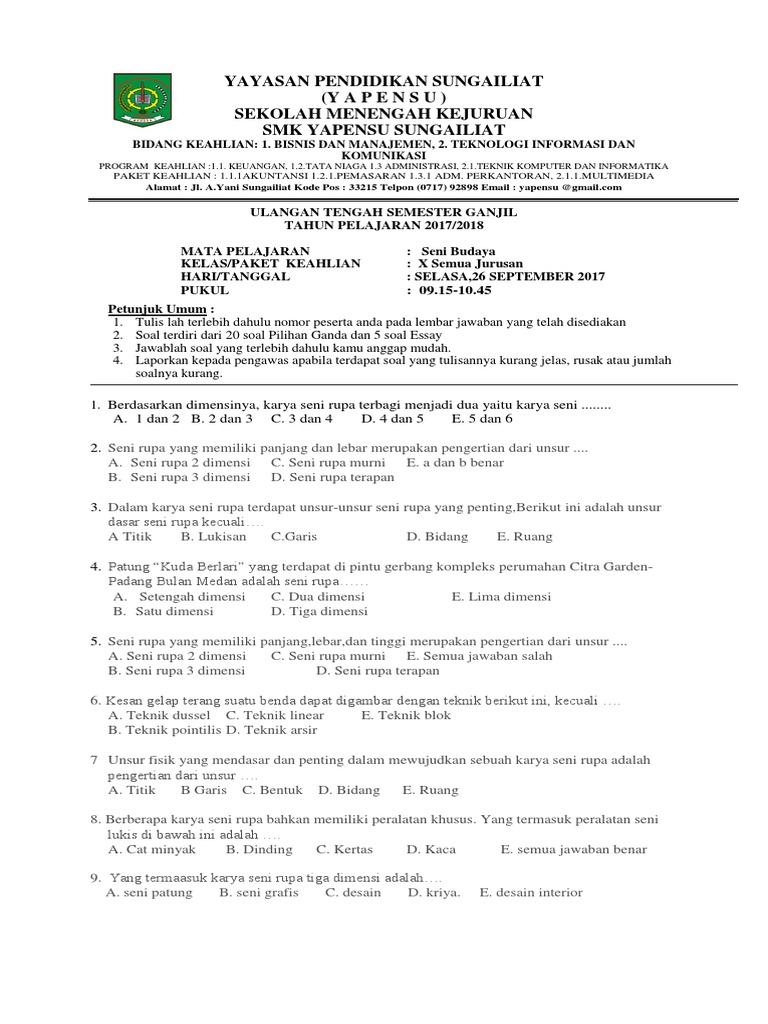 DOC) Soal UAS Seni Budaya Kelas X 2016-2017.docx | Rahmad Ramadlan - Academia.edu