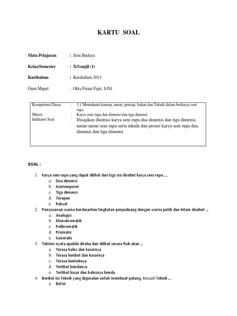 DOC) Soal Seni Budaya Kelas XII docx | Cutnovia Rizqy - Academia.edu
