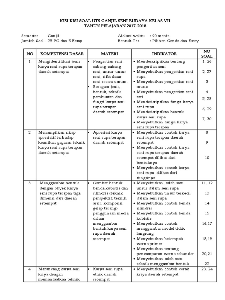 Soal Uts Seni Budaya Kelas 7 Semester 1 Dan Jawabannya - Guru Ilmu Sosial