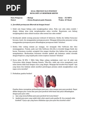Contoh Soal Dan Jawaban Pilihan Ganda Pernapasan Kelas Xi - Guru …