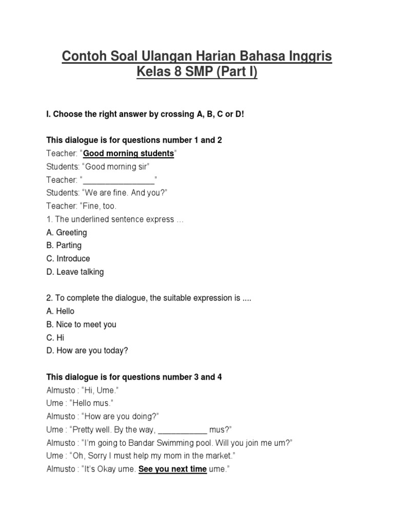 SOAL MID SEMESTER BAHASA INGGRIS KELAS 8 – BukuInggris.Co.Id