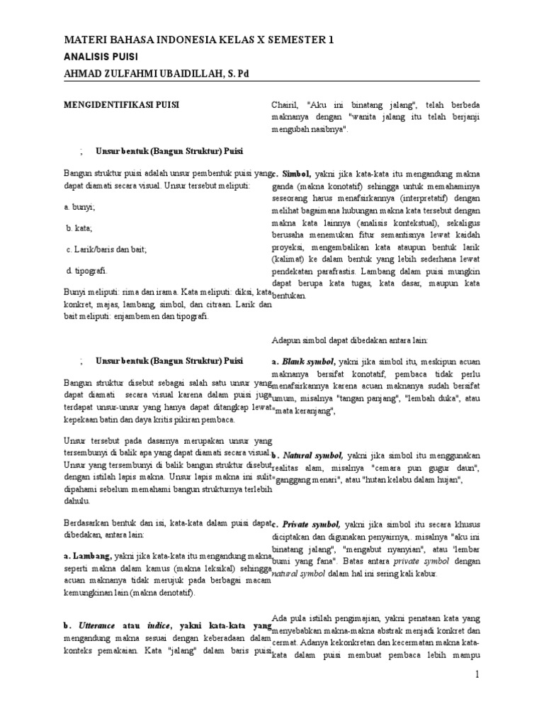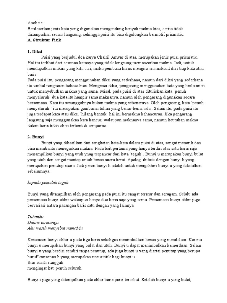 DOC) Analisis Struktural Puisi Penerimaan Karya Chairil Anwar | aprik sue - Academia.edu