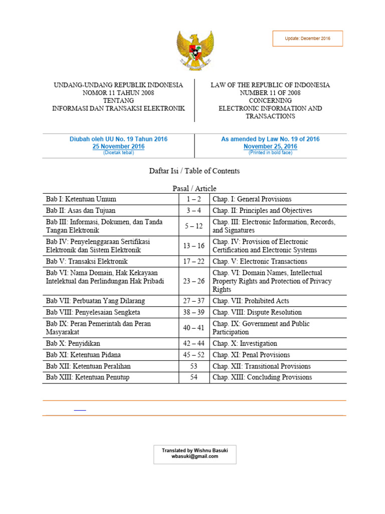 Law No. 11 of 2008 (19 of 2016) Electronic Information and Transactions Indonesia (Wishnu Basuki)